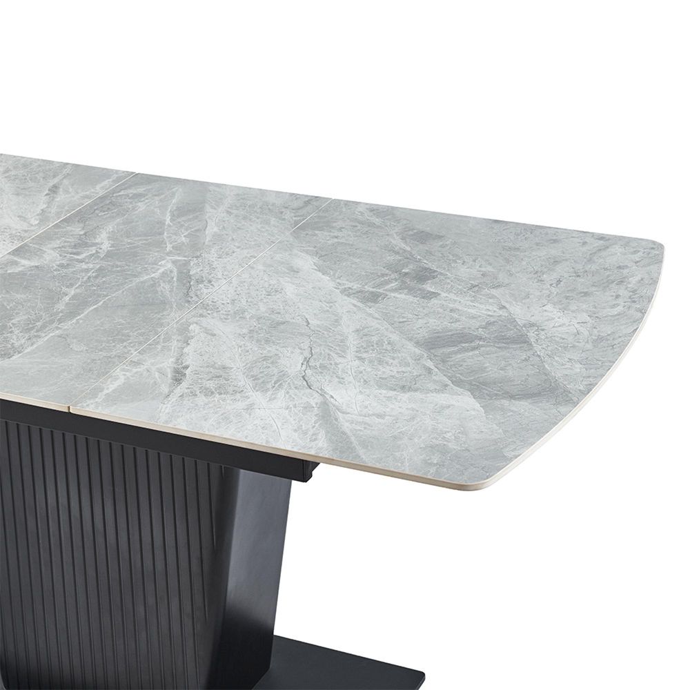 A striking balance of style, durability, and everyday practicality, the Dutton Grey Ceramic Extending Dining Table is designed for modern living. Its sleek ceramic surface, finished with a refined marble-effect pattern, captures the elegance of natural stone while offering the lasting strength and easy maintenance of ceramic.