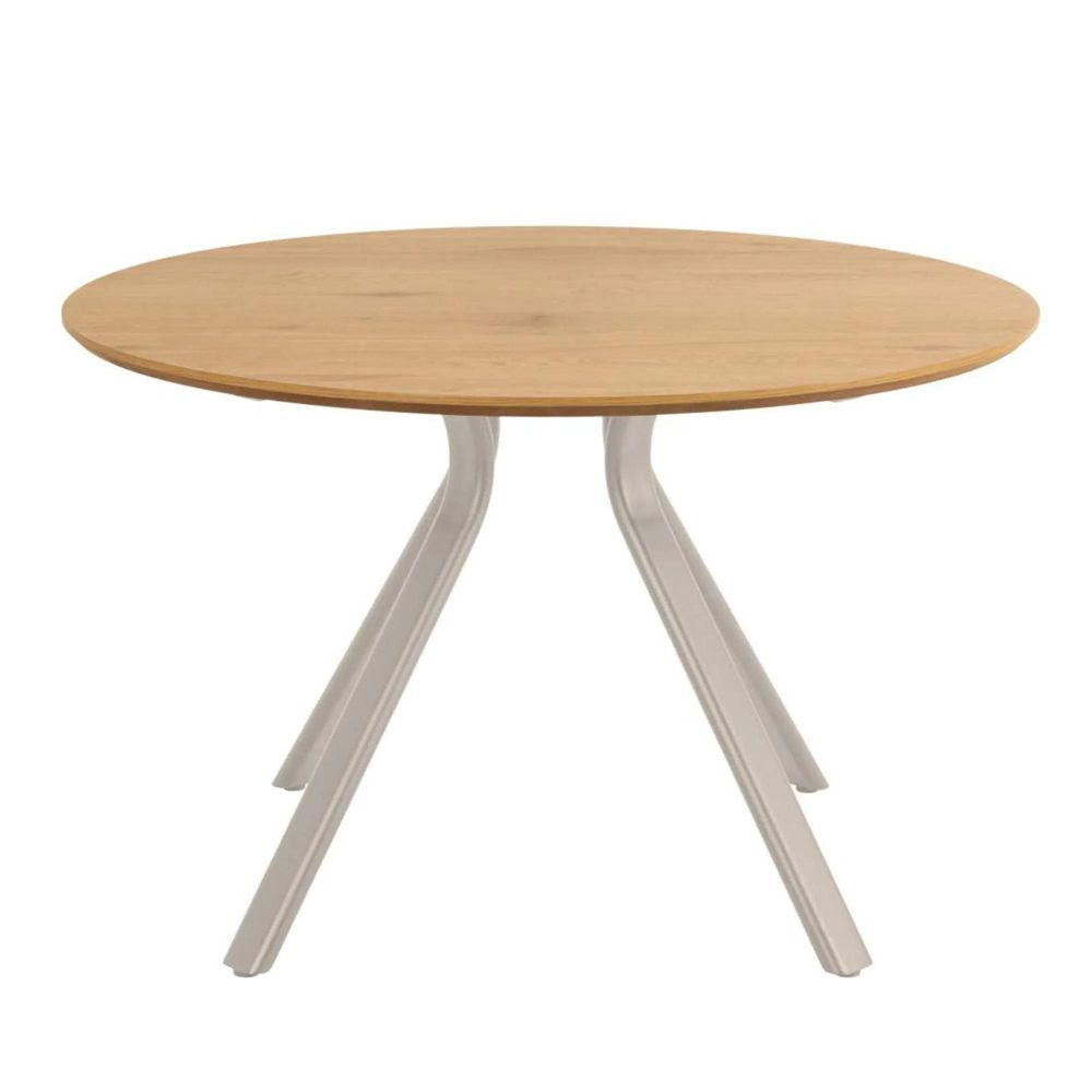 Item Code: H000025087 Bristol round dining table, top matt wild oak rough melamine, base grey rough powder coated steel. Be it on special days or all the other days, this round dining table can gather your nearest and dearest together without a difference. With its wild oak melamine easy care surface and grey powder coated steel base, the table fosters a sense of togetherness in the dining area on all occasions. FSC certified.Free Delivery