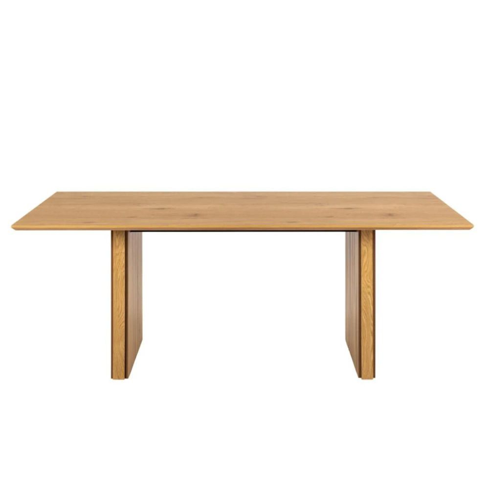 Item Code: H000023333 Colima rectangular dining table, top and base matt wild oak rough melamine with lamella front. A short glance at this rectangular dining table is enough for your heart to get stolen. Its clean lines, vertical slats, and earthy wild oak look make this dining table the perfect centrepiece for any contemporary dining room. Such a table turns any dining experience into a cosy and stylish affair. FSC certified.Free Delivery