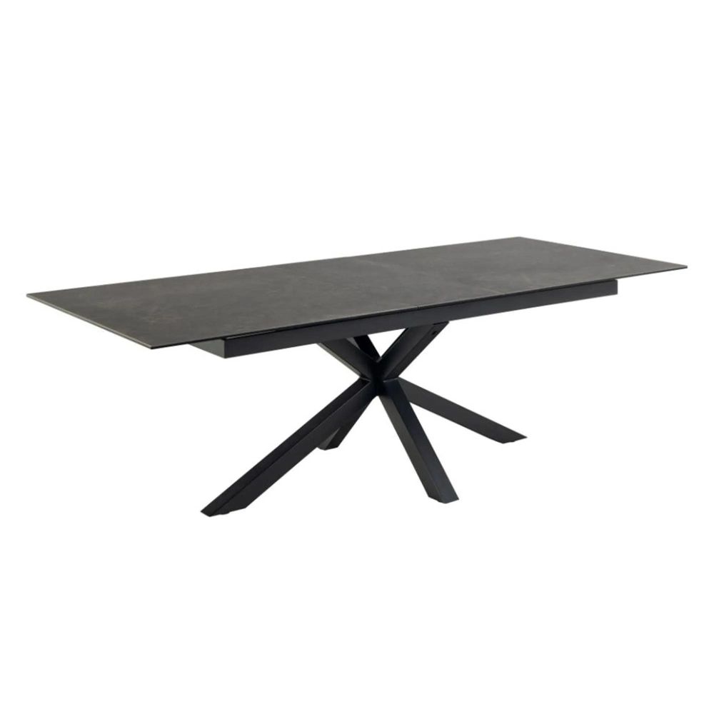 Item Code: H000022636 Heaven rectangular dining table, top black Fairbanks rough ceramic, 4-star base matt black rough powder coated steel with extension leaf storage and synchronous extension. Since practicality and design often are equally important when it comes to dining tables, this table was not crafted just to serve its purpose but also to please an aesthetic eye. It is designed with a cool ceramic tabletop which both is heat and scratch-resistant and the sculptural cross base perfectly matches the table and makes a statement while it is at it.Free Delivery