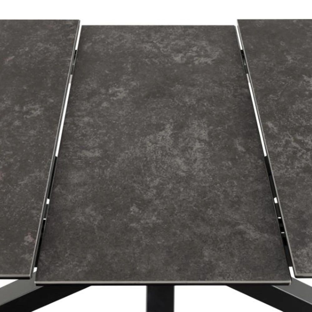 Item Code: H000022568 Heaven rectangular dining table, top black Fairbanks rough ceramic, 4-star base matt black rough powder coated steel with extension leaf storage and synchronous extension. Since practicality and design often are equally important when it comes to dining tables, this table was not crafted just to serve its purpose but also to please an aesthetic eye. The black ceramic tabletop is not only cool and super modern it is also heat and scratch-resistant and demands very low maintenance. And if you need more surface space the table features easy synchronous extension.Free Delivery