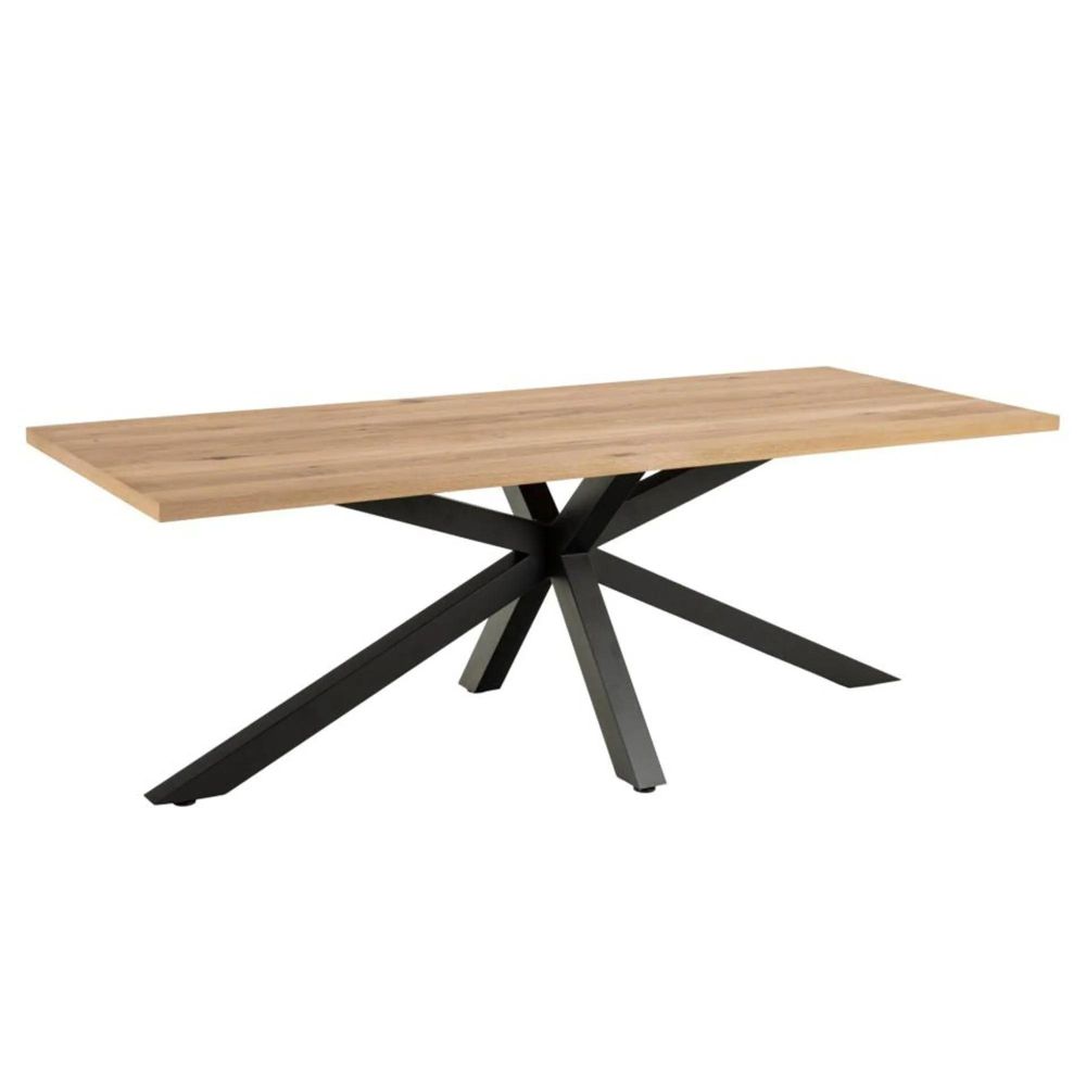 Item Code: H000022148 Heaven rectangular dining table, top wild oak oiled veneer, 4-star base matt black rough powder coated steel. introducing the heart and soul of your dining room- a rustic yet modern dining table. Its generous rectangular tabletop provides space for up to 8 people, which makes the table perfect for any cosy gatherings. To bring a bit of nature inside, the tabletop has an oiled wild oak veneer surface that instantly warms the room. It stands on the black metal cross base to fill the room with pulsing energy.Free Delivery