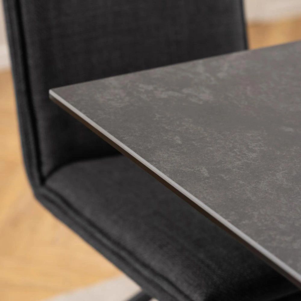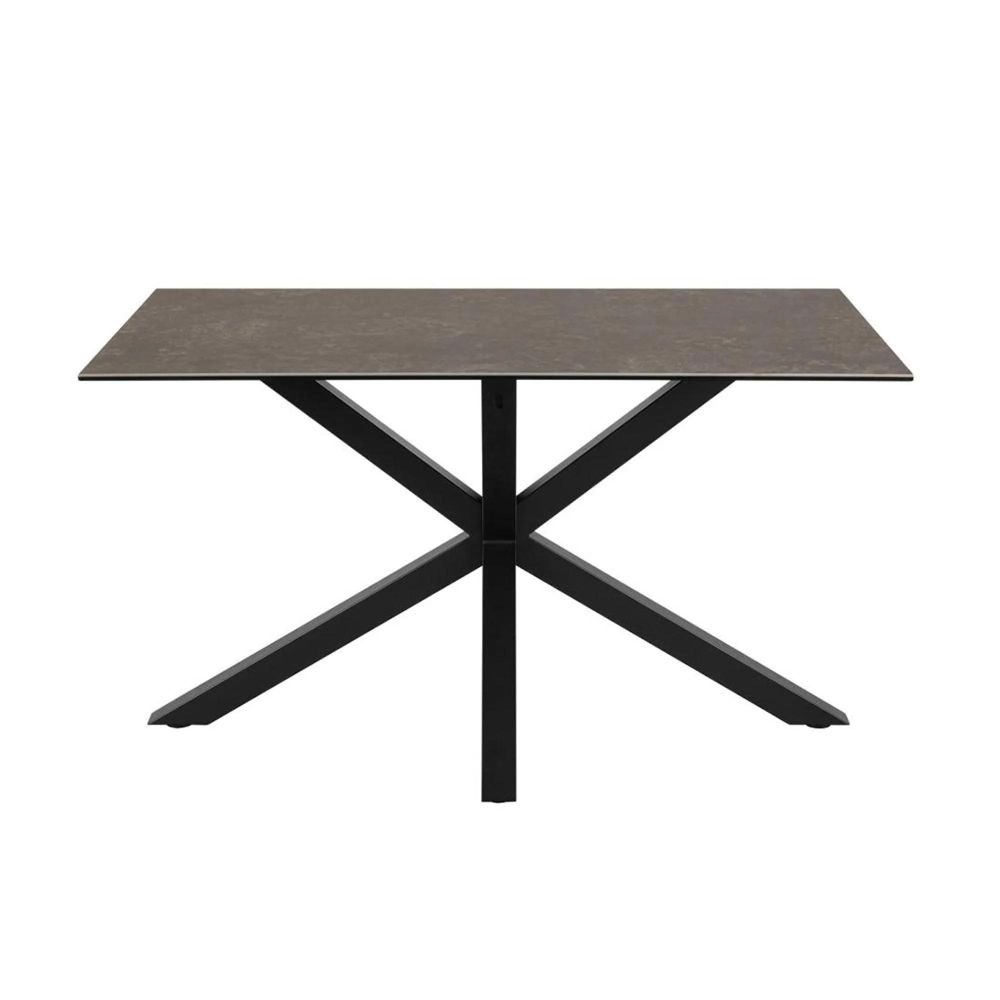 Item Code: H000022901 Heaven rectangular dining table, top black Fairbanks rough ceramic, 4-star base matt black rough powder coated steel. The ceramic dining table offers balanced aesthetics as well as generous space for 4 people. Designed with a heat and scratch-resistant ceramic tabletop in a black marble look and a sculptural black cross base this table has a modern expression and is easy to maintain as well. Such characteristics make the design an ideal addition to any home.Free Delivery