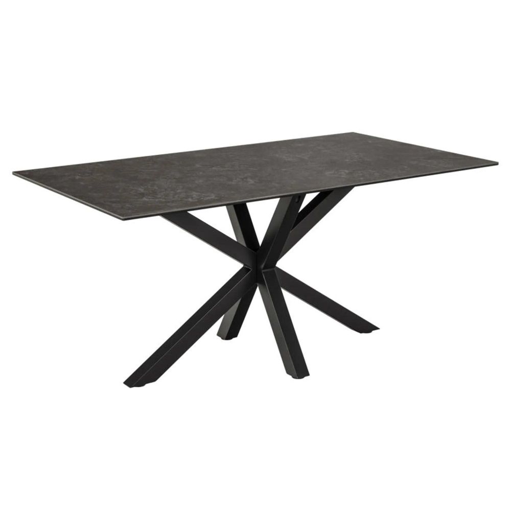 Item Code: H000020855 Heaven rectangular dining table, top black Fairbanks rough ceramic, 4-star base matt black rough powder coated steel. The black dining table offers balanced aesthetics as well as generous space for up to 6 people. Designed with a heat and scratch-resistant ceramic tabletop and a sculptural metal cross base in black colour, this table has a modern expression and is easy to maintain as well. Such characteristics make the design an ideal addition to any home.Free Delivery