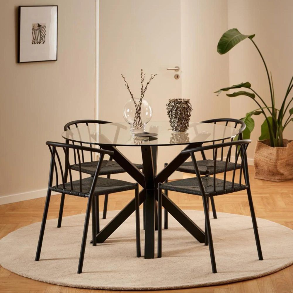 Heaven Round Dining Table - 4 Seater - 119cm - Glass - with Black Star Legs