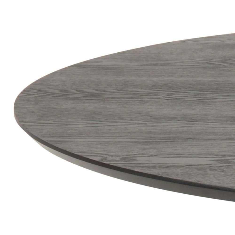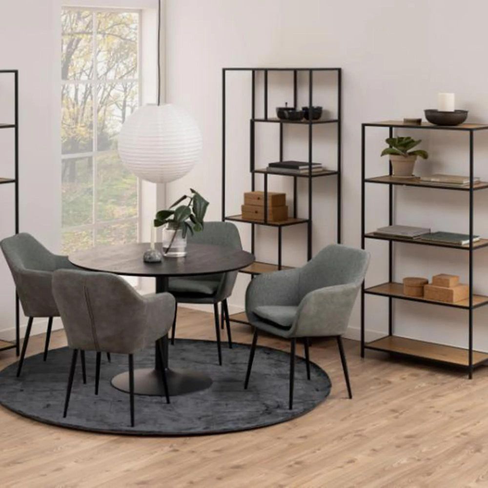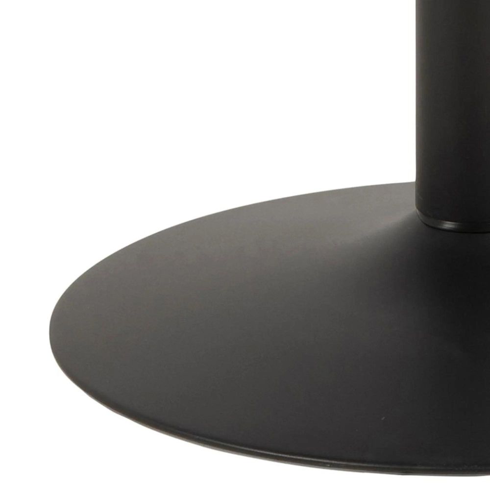 Item Code: H000024900 Ibiza round dining table, top matt black NC lacquered ash veneer, trumpet base matt black rough powder coated steel. Characterised by its minimalistic design, this round dining table comfortably seats 4 people. Its dimensions make it ideal for smaller dining areas, helping to maximise space. The black ash veneer enhances the table's aesthetic appeal, while the round trumpet base made of steel complements the top. This well-balanced table is suitable for any occasion.Free Delivery