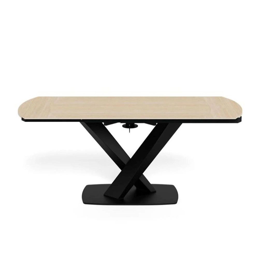 Morella Extending Oval Dining Table - 6-8 Seater - 160cm-240cm - Sand Ceramic - with Cross Base
