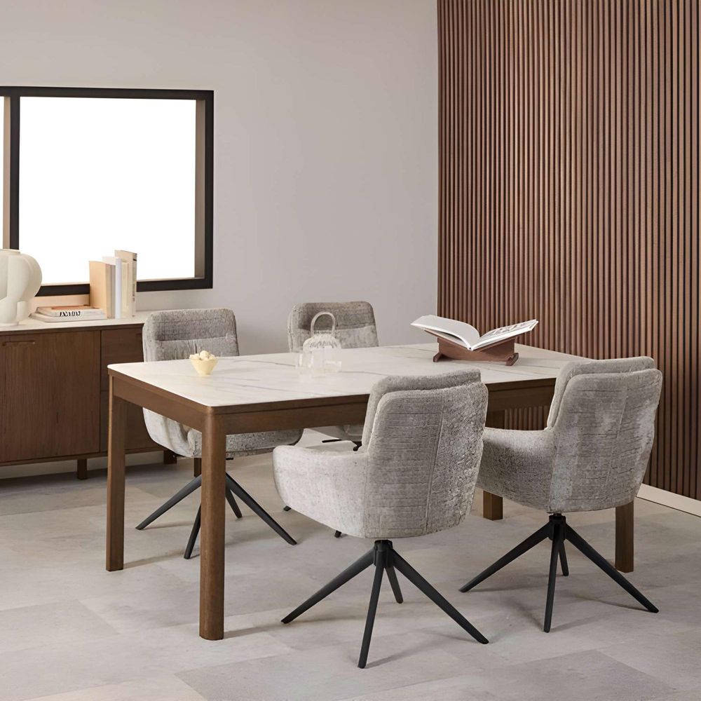 Item Code: H000024885 Southampton rectangular dining table, top cream Talvera polished ceramic, base smoked NC lacquered oak veneer. The deep, rich hue of the smoked oak veneer and polished cream ceramic with subtle veins create a visual sensation awakening the senses. Designed with a rectangular top and sturdy square legs, this dining table will complement the space with its sophistication. It comfortably seats 6 people.Free Delivery