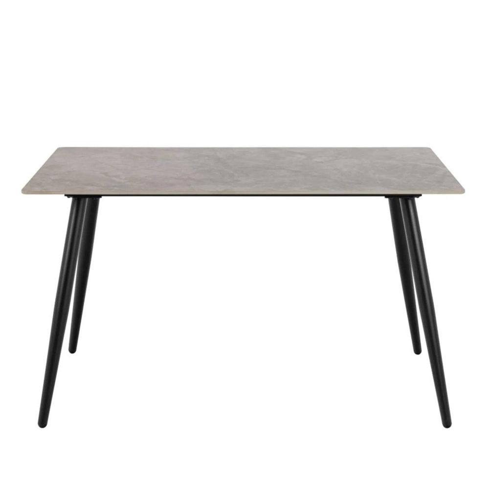Item Code: H000024272 Wicklow rectangular dining table, top grey Batis polished ceramic, base matt black rough powder coated steel. This minimalist dining table is designed with durable materials, making it ideal for everyday use. Its rectangular tabletop is made of grey ceramic, a material known for its heat and scratch-resistant properties. To achieve a balanced look, it is completed with conic black steel legs. It comfortably seats 4 people.Free Delivery
