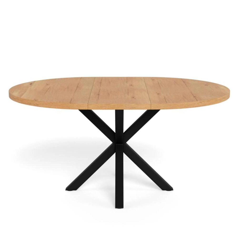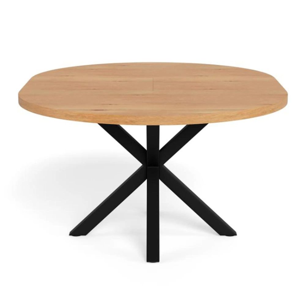Item Code: H000025326 Heaven round dining table, top wild oak oiled veneer, 4-star base matt black rough powder coated steel with butterfly extension, extension leaf storage, straight grain and synchronous extension. Gather in style around this timeless dining table - where elegant craftsmanship meets clever functionality. The round design encourages togetherness, while the hidden butterfly extension effortlessly transforms it for extra guests. A refined mix of warm oak and matte black steel gives it a timeless, modern and industrial edge. FSC certified.Free Delivery