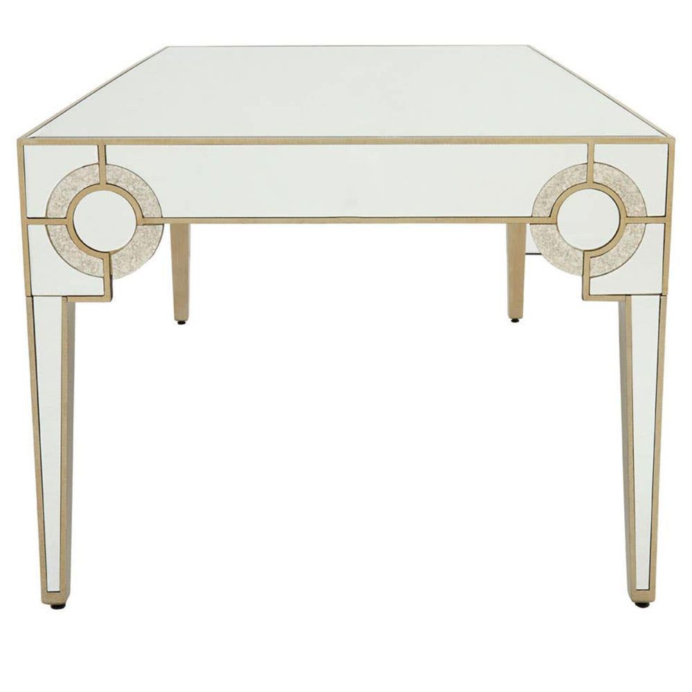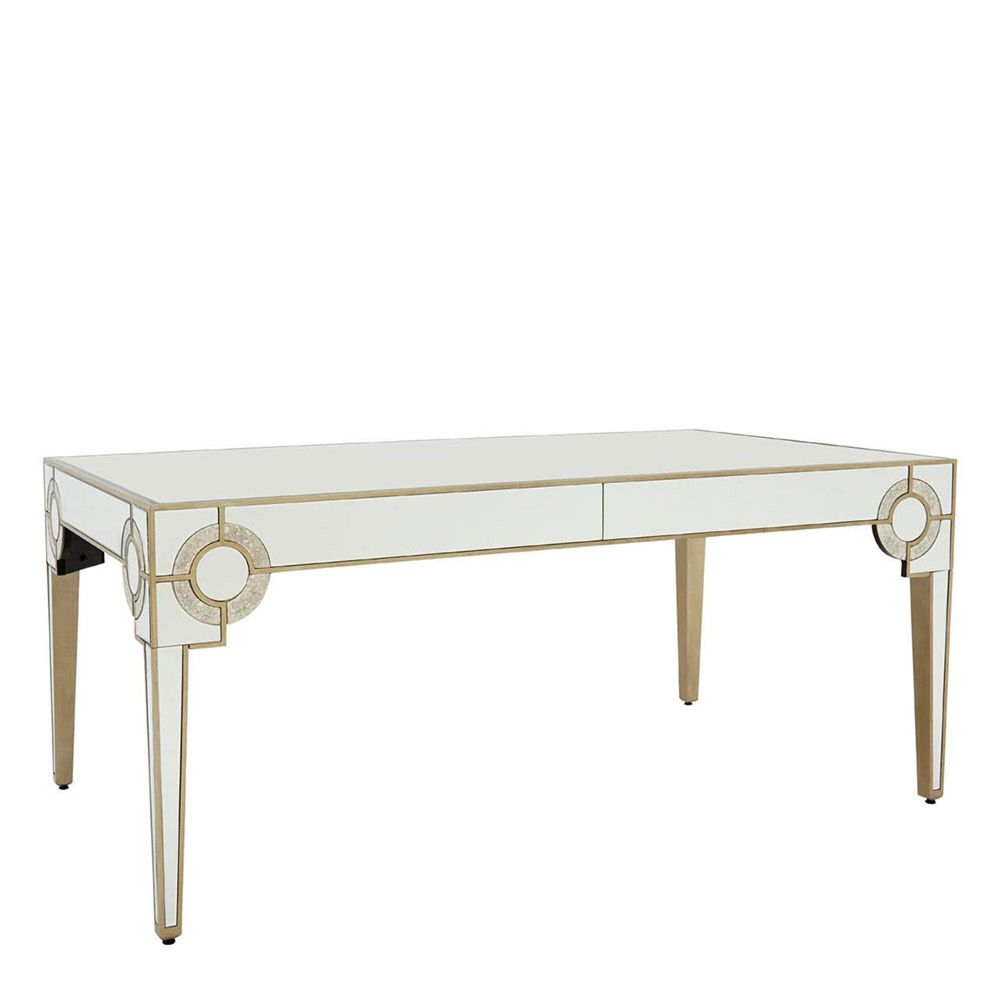 Item Code: 5502171 The large Knightsbridge dining table makes a statement in the dining room with its mirrored glass panels.Each corner of the dining table is decorated by a segmented circle motif made using antique-finished mirrored glass.