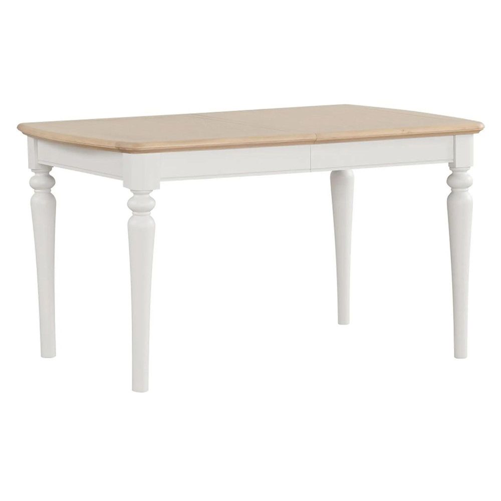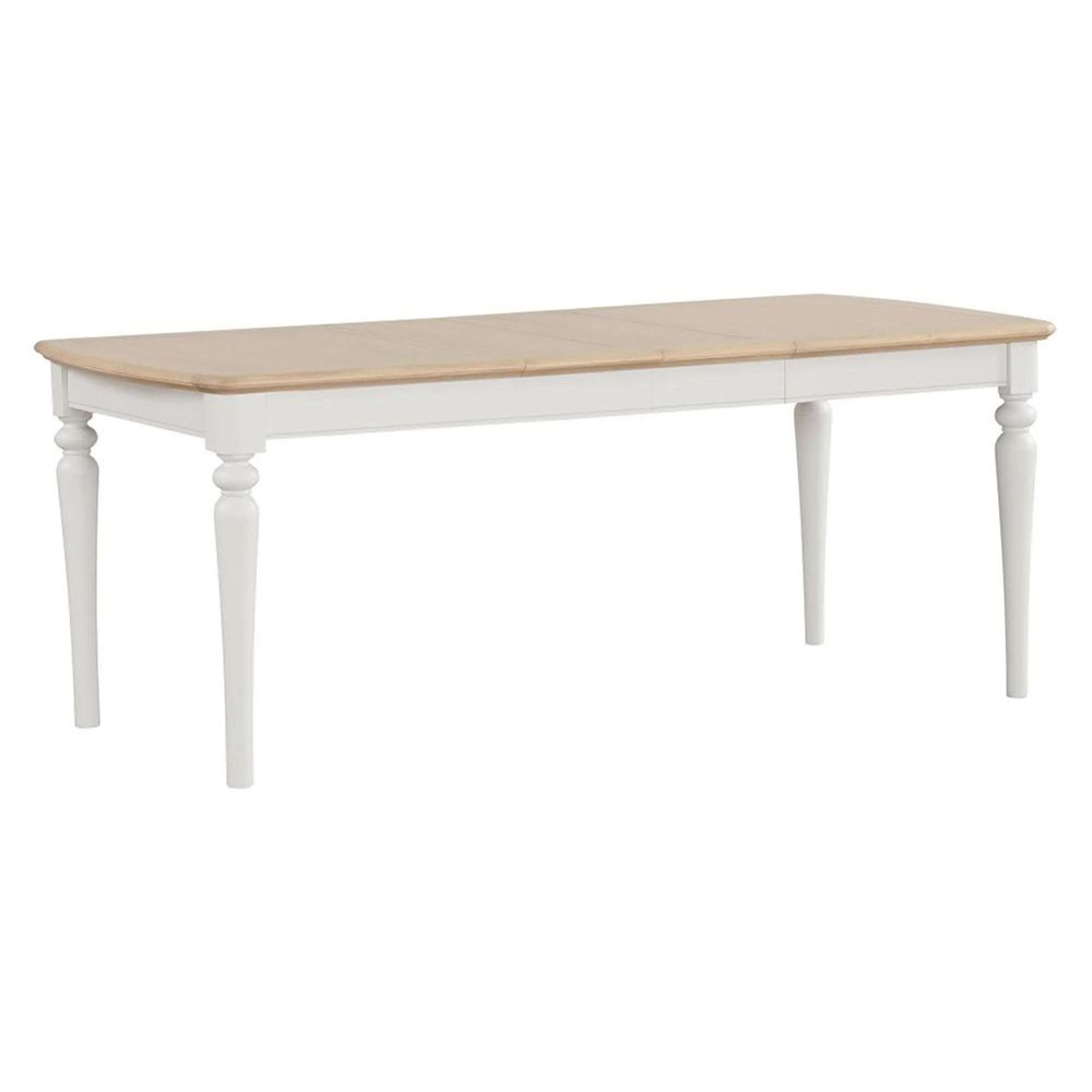 Ideal for everyday dining and special gatherings, this beautifully crafted extending table features a solid oak top, classic turned legs, and a smooth painted finish perfect for modern country homes. The innovative pull out leg design extends the legs outward, increasing the table size from 160cm to 196cm while providing generous legroom?so no one has a table leg between their legs. Two extension leaves are cleverly stored inside the table when not in use, offering seamless flexibility without sacrificing style or comfort ideal for flexible family living with a refined country twist.