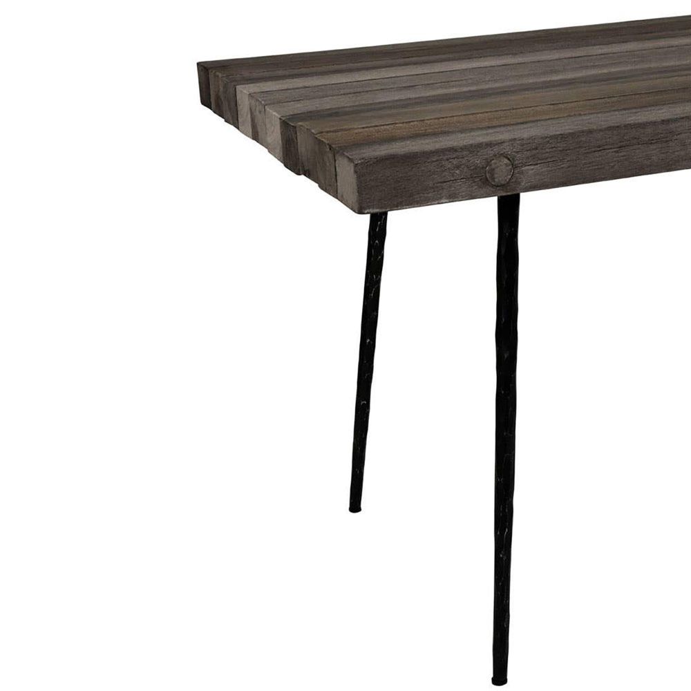 Item Code: 5502413 This dining table features subtle graining that goes well with vintage and organic-inspired styles.The Mason dining table creates a rustic statement in the living area with the old oak top in stone grey and light blue colour. The rectangular tabletop is fixed neatly on a sturdy iron base which adds style with practicality.
