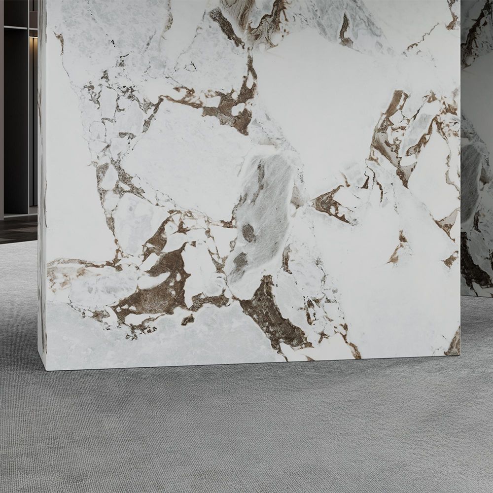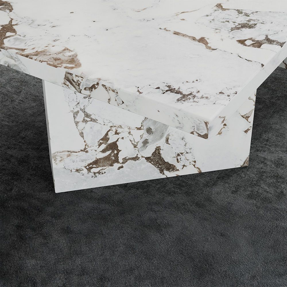 - White marble tabletop with Calcutta-style veining