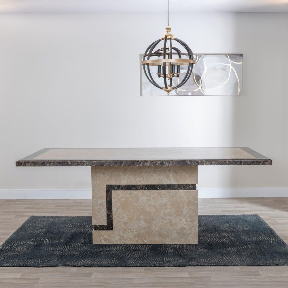 Discover understated elegance with the Venice Cream Marble Dining Table, a refined centrepiece from the Venice Range by Humz. This sophisticated rectangular dining table is the embodiment of minimalist luxury, crafted from premium cream marble with delicate white veining and contrasted by rich brown marble accents, also featuring soft white marbling. The result is a harmonious blend of tone and texture that adds quiet grandeur to any interior.