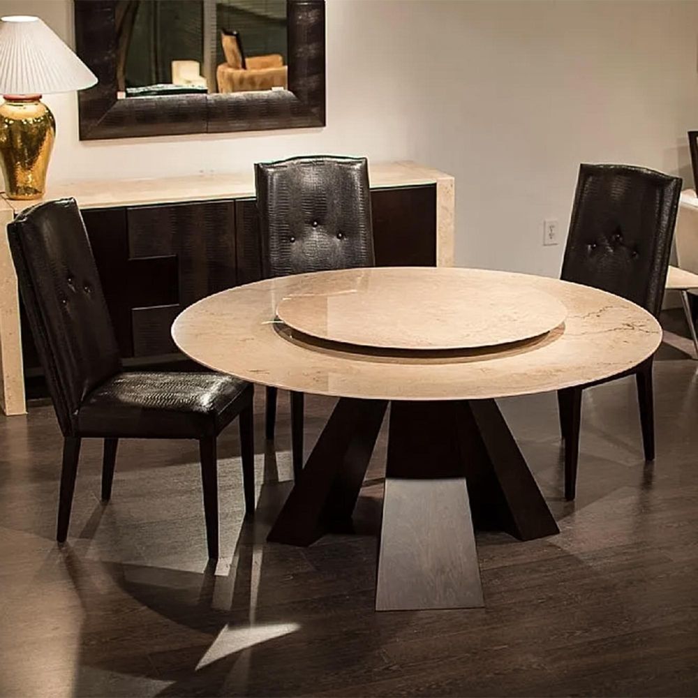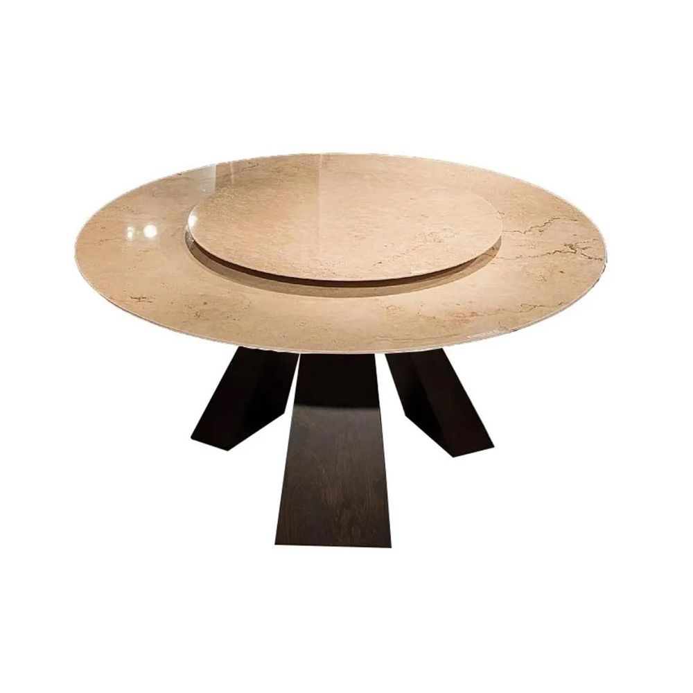 Butterfly Dining Table - Round - Marble with Wooden Pedestal Base - with Lazy Susan - Variation Available