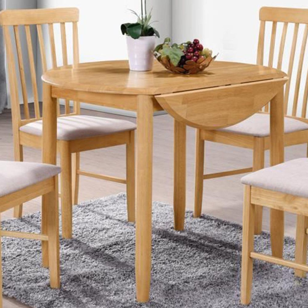 Item Code: 12467 This solid hardwood dining table has a round shape, flat-packed assembly and a light oak finish. The 61cm-91cm drop leaf feature ensures an easy storage solution, making it perfect for smaller spaces. With seating for two, it is perfect for intimate dinners or a cup of coffee for two.