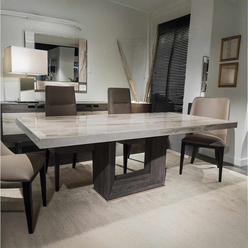 Blade Dining Table - Marble with Wooden Pedestal Base - Variation Available