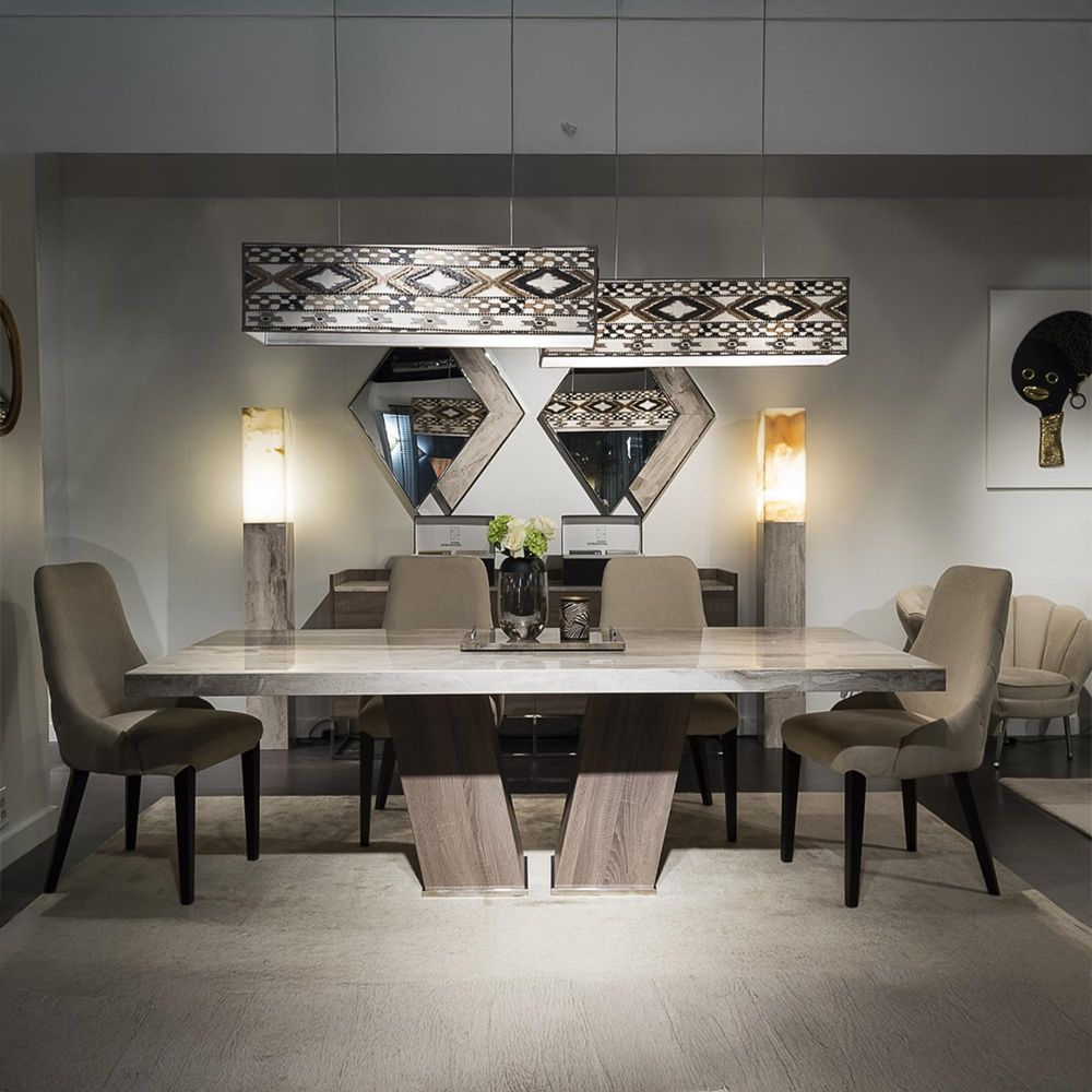 Vertigo Dining Table - Marble with Wooden Pedestal Base - Variation Available
