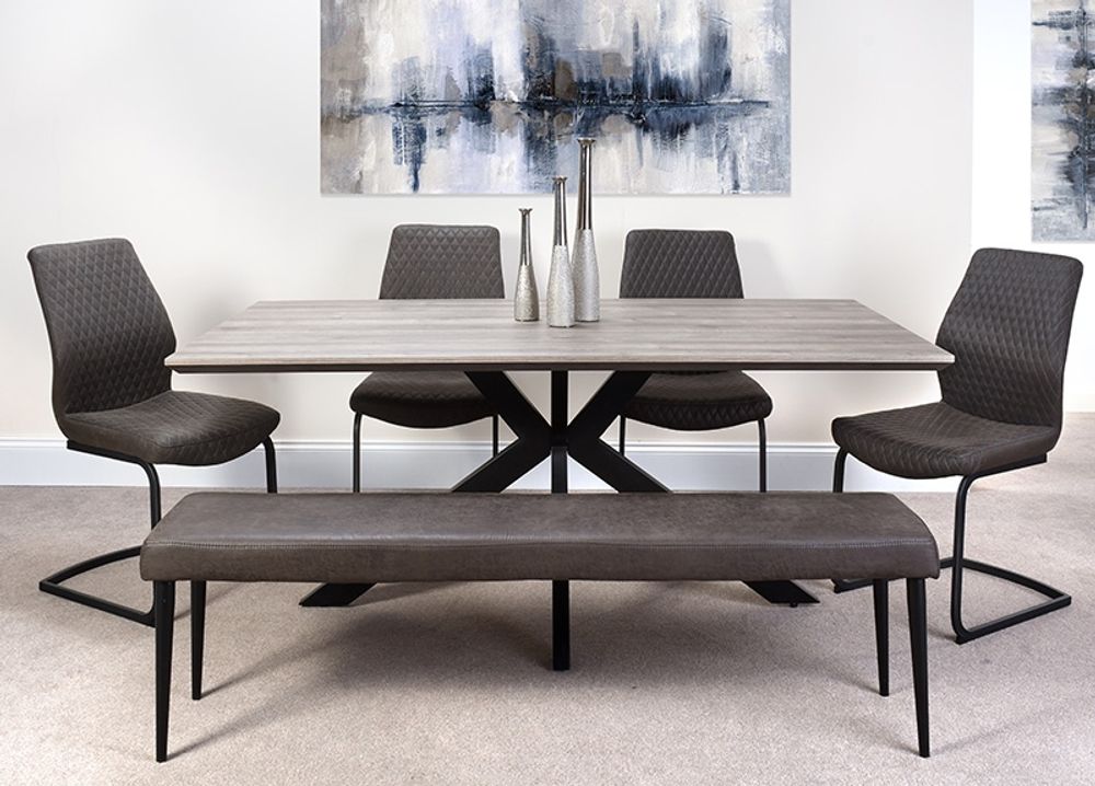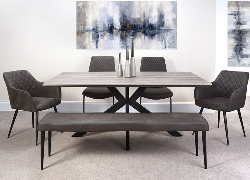 Manhattan Dining Table - Grey - 6 Seater - 180cm - Black Spider Legs Base
