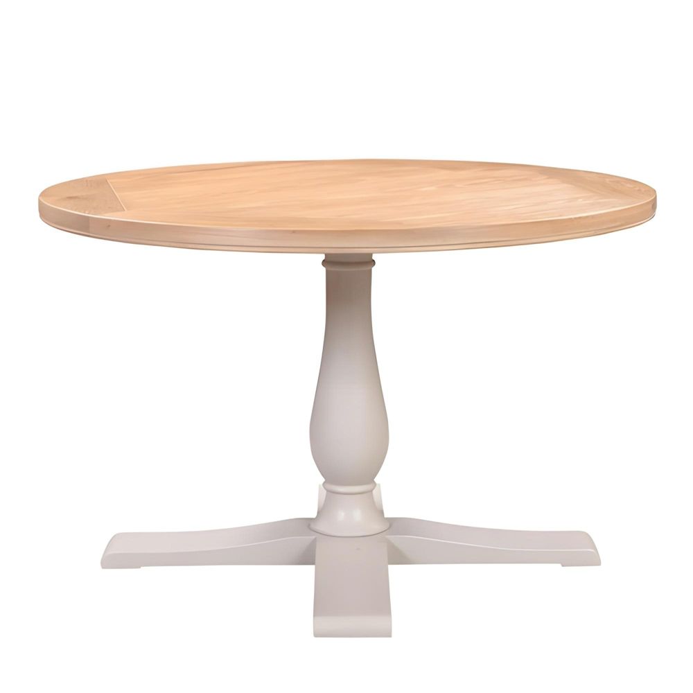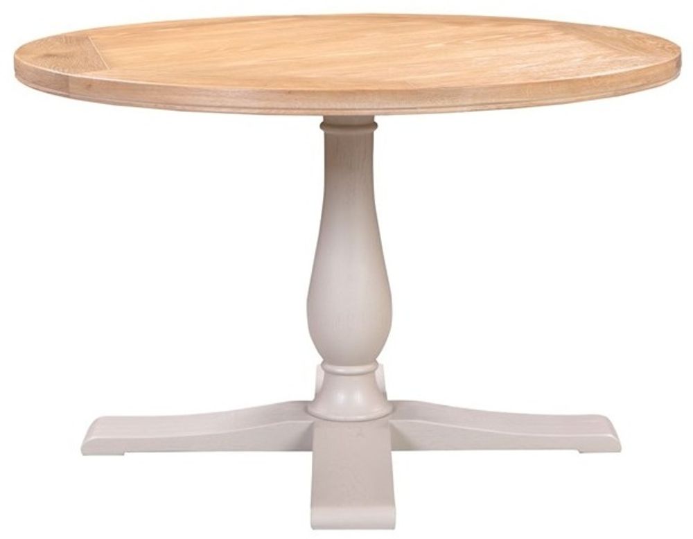 Item Code: 84-41 The Clarion Painted 120cm Round Table has a fixed top and shapely central pedestal leg. Ideal for seating 4/6 people. The range is characterized by rounded corners, traditional moulding and contemporary stainless steel handles.