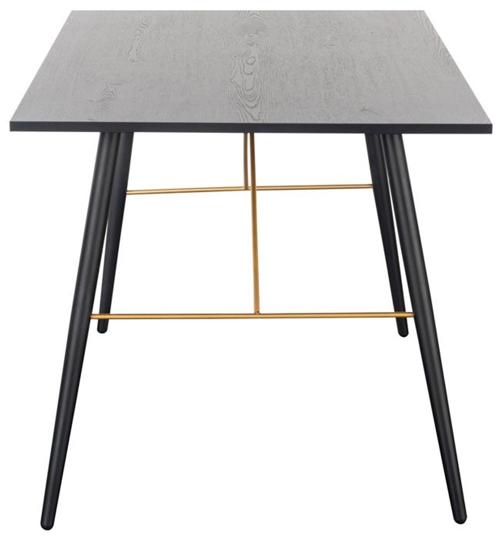 Item Code: Bar-120-BK Black oak melamine, powder-coated black metal legs, copper metal accents. Features:
