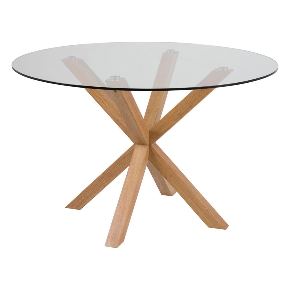Heaven Round Dining Table - 4 Seater - 119cm - Glass - with Oak Star Legs