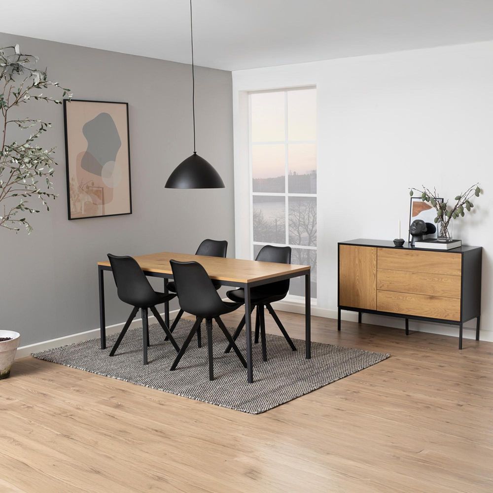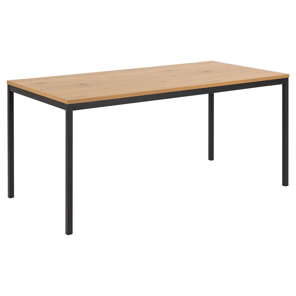 Item Code: 86912 This stylish and contemporary dining table can serve 6 people and is sure to be a focal point for your dining room. Made from strong wood and metal with a beautiful Wild Oak and Black finish, it is sure to be a lasting addition to your home. Perfect for hosting family dinners, the rectangular shaped table measures 160cm so you can fit plenty around it! Flat packed and easy to assemble.