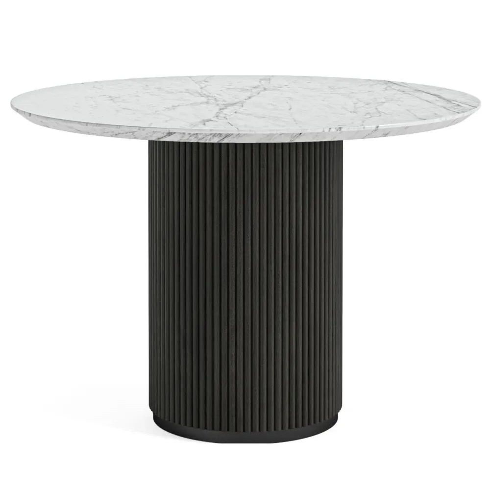 Lucas Black Round Fluted Dining Table - 4 Seater - 120cm - White Marble Top