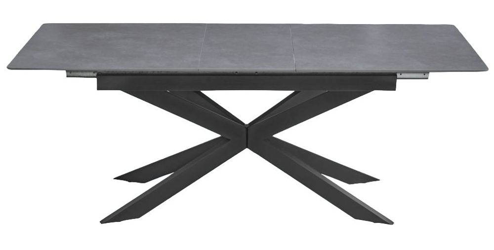 Introducing our new range of Sintered stone products. The Azzurra looks aesthetically pleasing to the eye and yet is toughly resistant to heat, scratching and stains, a product for creative expression which will have a lasting impact. A 160cm extension dining table which employs a smart automatic extension mechanism in which you can extend or shorten with one smooth motion. Complimented by a console, coffee and end table all in dark grey sintered stone tops, with black metal legs. Azzurra will make an impact statement in any home.