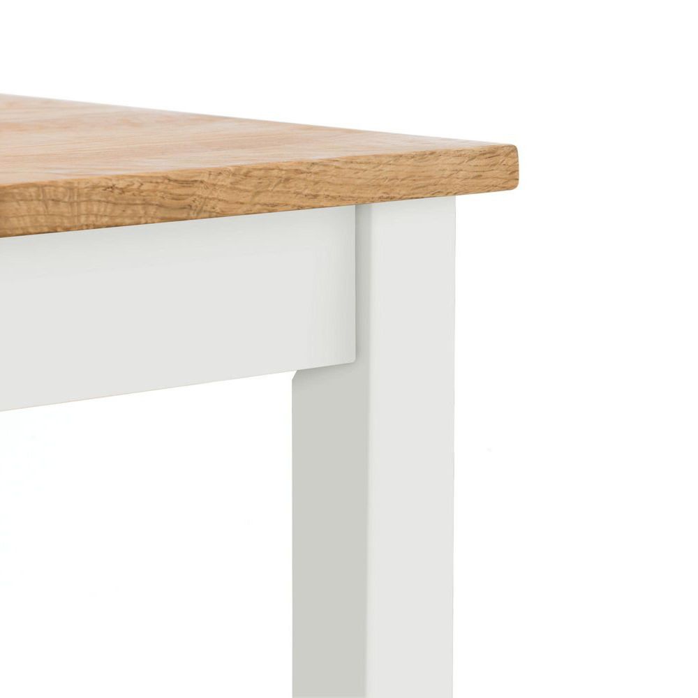 Item Code: COX103 This compact solid oak dining table in an ivory & oak finish, is suitable for small kitchen diners. This classic, timeless design adds extra room for you to enjoy your daily meals.