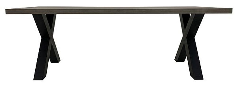 The solid industrial luxe table has been designed by experts to combine contemporary styling with functionality. The top is designed to look like wood but with added SmarTops® Technology (heat, stain and scratch resistance). The cross design of the substantial base is expertly executed giving a clean image and that statement piece long desired for your dining space.