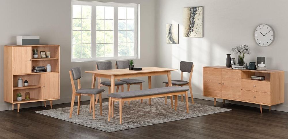 The new Jenson living, dining and bedroom collection has a Scandi / Retro styling to it. Light oak and veneers make up this stunning range. Sleek lines and an uncomplicated, uncluttered finish to all pieces but also design led pieces like the bookcase make this range stand out from the crowd.