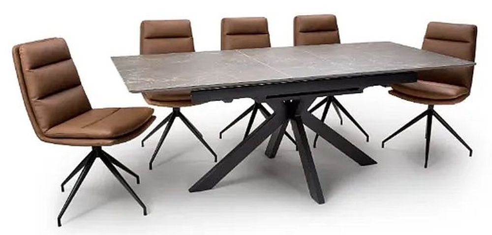 As the trend for more natural and earth colours takes hold in the interior’s world it’s no surprise that furniture for the home is following. Introducing the Galaxy range of dining tables compromising of fixed and pop-up extending tables in several sizes. This SmarTops range made from Sintered stone which is heat, stain and scratch resistant, and is the star attraction here compromising of rich shades and tones of Black, Brown, Copper and Taupe all working together to give a stunning marbled effect. The addition of the sunray metal base in black pulls this delightful designer set of dining tables to the next level of sophistication.