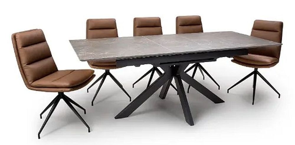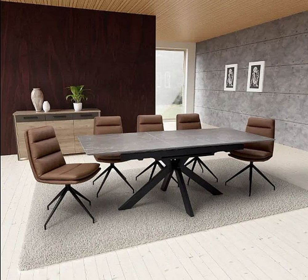 As the trend for more natural and earth colours takes hold in the interior’s world it’s no surprise that furniture for the home is following. Introducing the Galaxy range of dining tables compromising of fixed and pop-up extending tables in several sizes. This SmarTops range made from Sintered stone which is heat, stain and scratch resistant, and is the star attraction here compromising of rich shades and tones of Black, Brown, Copper and Taupe all working together to give a stunning marbled effect. The addition of the sunray metal base in black pulls this delightful designer set of dining tables to the next level of sophistication.
