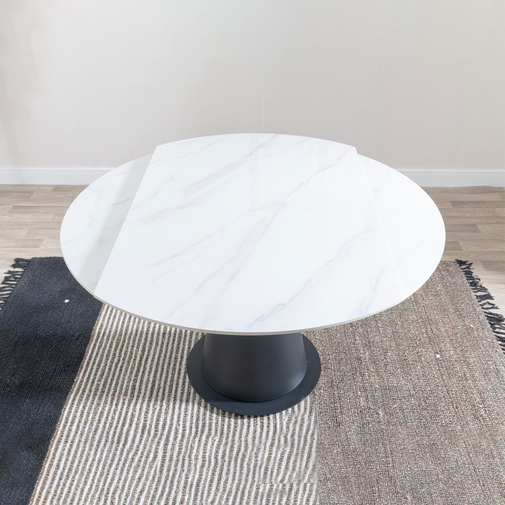 Designed for those who appreciate refined craftsmanship and timeless function, the Carrara Dining Table blends sleek aesthetics with practical engineering. With its unique swivel motion, this table transforms from a compact round shape into an elegant oval, comfortably seating up to six guests. Whether you're setting up for a quiet evening meal or a special gathering, it's adaptable form and premium materials make it a lasting centrepiece in any modern kitchen or dining area.