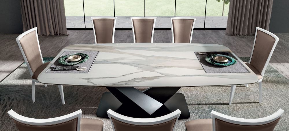 Elite Dining Table - Ceramic - with V Base - Bianco Antico - Variant Available