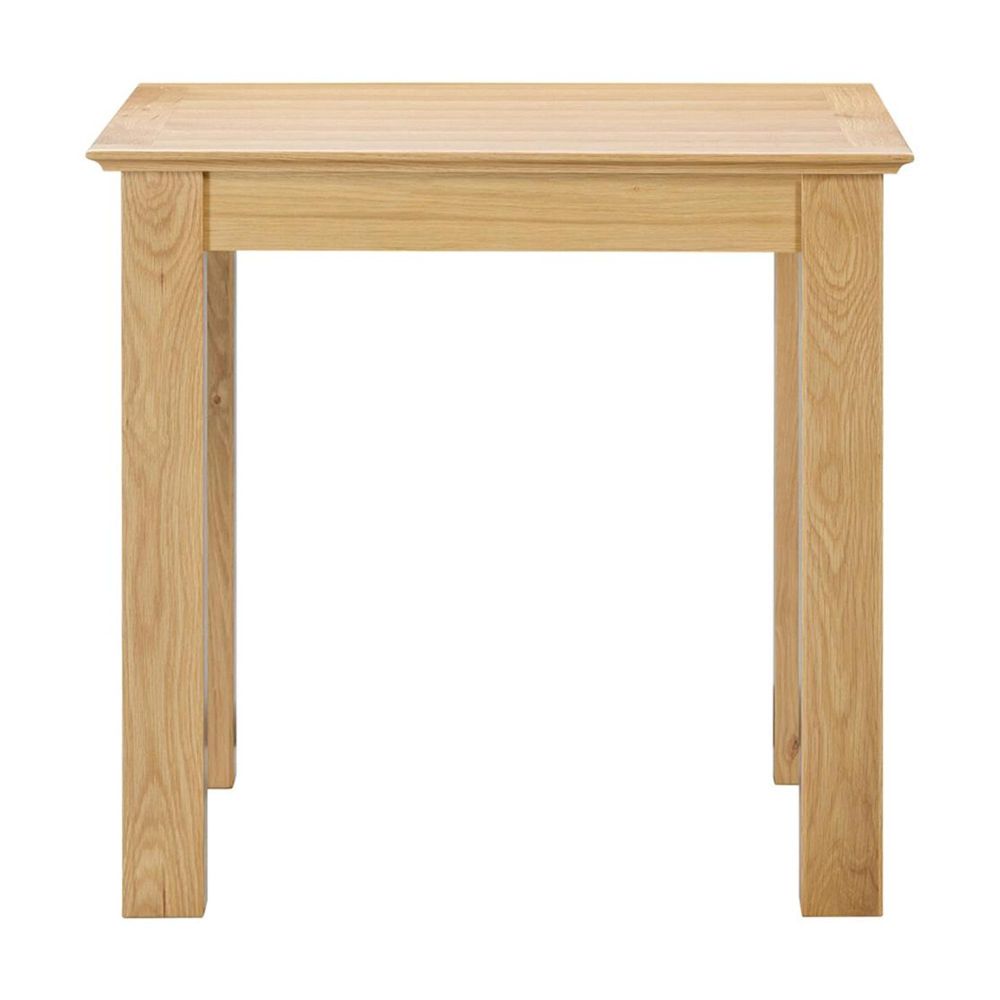 Crafted from solid oak, oak veneer, rubberwood, pine, and MDF, this dining table balances strength and style. The surface is treated with a light protective lacquer, giving it a clean and modern look while preserving the natural beauty of the wood grain. Its compact size is ideal for kitchens, smaller dining areas, or as a breakfast table, yet its refined detailing ensures it looks just as impressive during intimate dinners or gatherings.