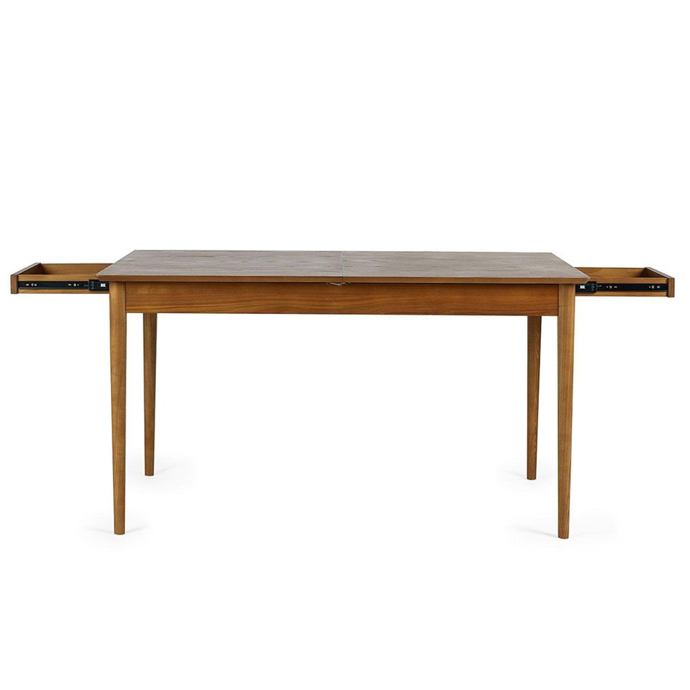 Item Code: LOW001 A gorgeous retro inspired style, the Lowry Extending Dining Table is constructed from an exquisite cherry ash wood veneer, complemented by beautifully slender legs to create an effortless look for any dining room space. It features two stunning push-open drawers and an ideal extension system creating the perfect storage space for any essentials.