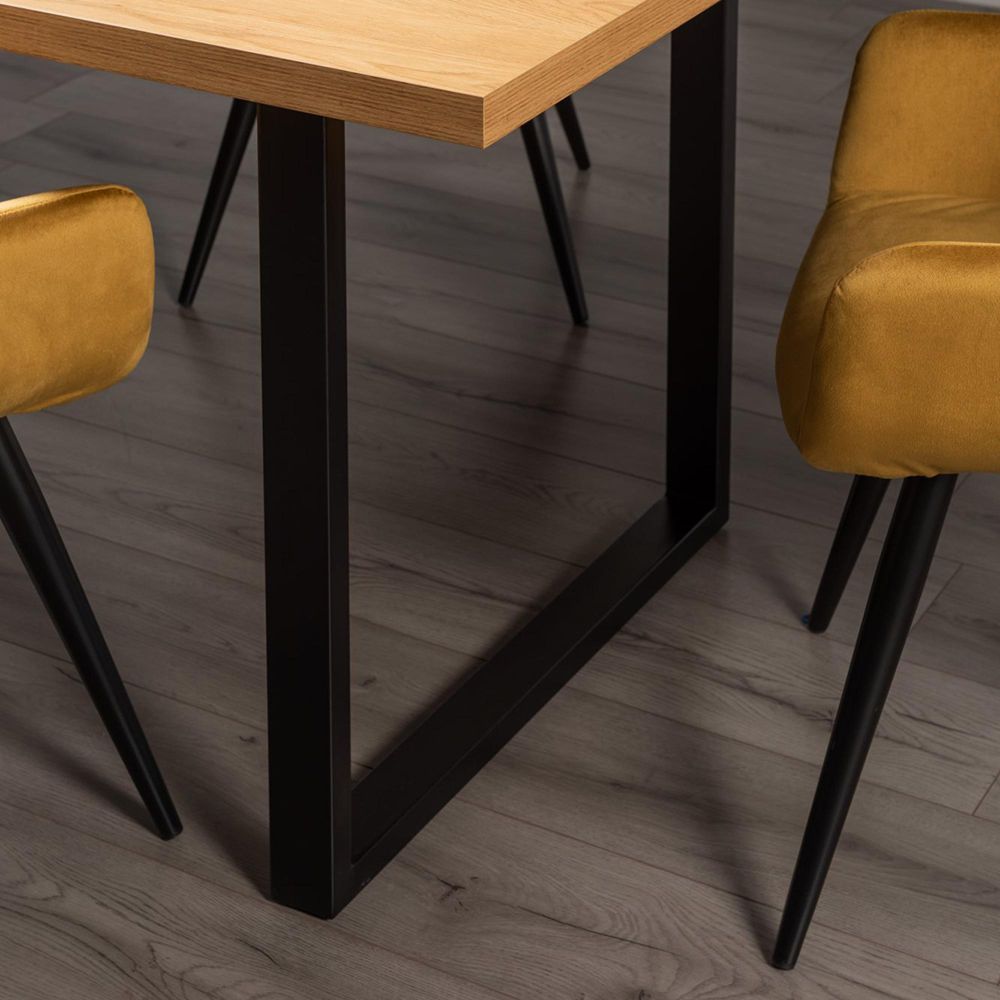 Item Code: H5100-4-LU The Ramsay U leg, six-seater table offers practicality and style in one, making it the perfect addition to your dining space. With a hard-wearing melamine tabletop, finished in a rustic oak effect, this design considers longevity and function so that you can enjoy mealtimes with family and friends for years to come. Set upon two U-shaped rectangular metal legs finished in a sand black powder coating, the Ramsay combines industrial and bold materials with those that feel natural and organic, resulting in a contemporary dining range for your home.