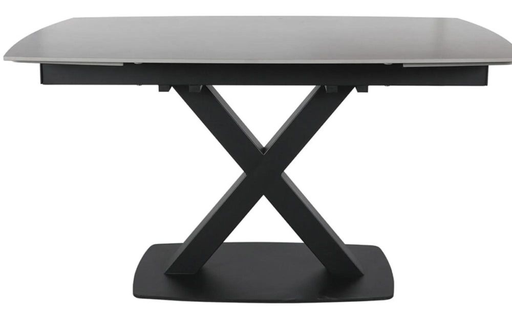 The sleek grey surface is paired with a striking black powder-coated cross pedestal base, creating a bold yet timeless centrepiece for your dining space. With a rectangular top softened by gently curved edges, this table strikes the perfect balance between elegance and comfort.