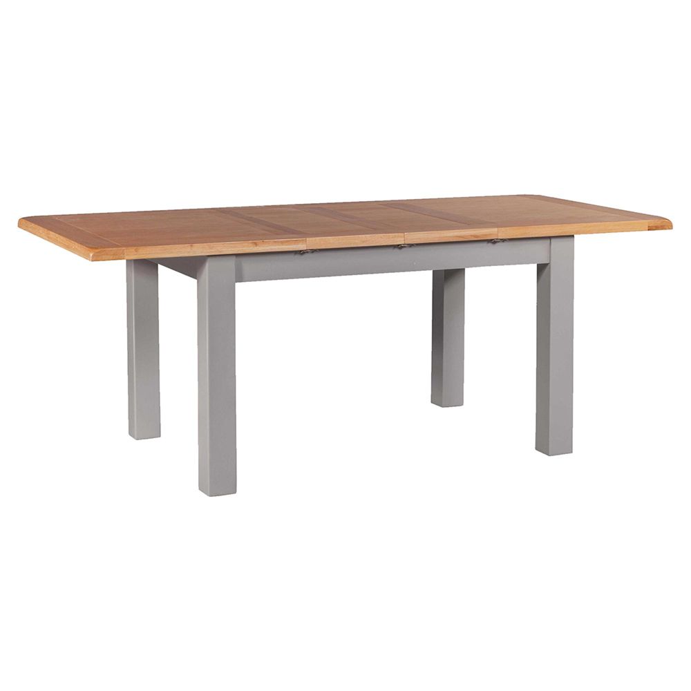 Expertly built from solid oak and solid wood, it features a grey painted finish that adds a refined yet welcoming touch to any dining room. The lacquered oak top showcases the natural grain and warmth of the wood, offering a durable surface that’s made to last for years of shared meals and conversation.