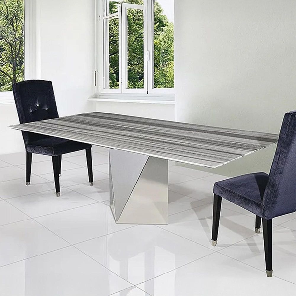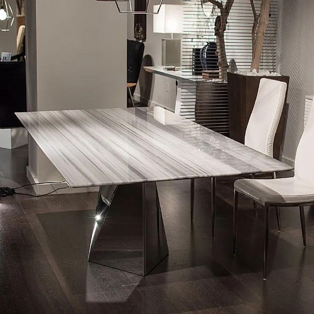 Freedom Dining Table - Slim Edge - Marble with Stainless Steel Pedestal Base - Variation Available