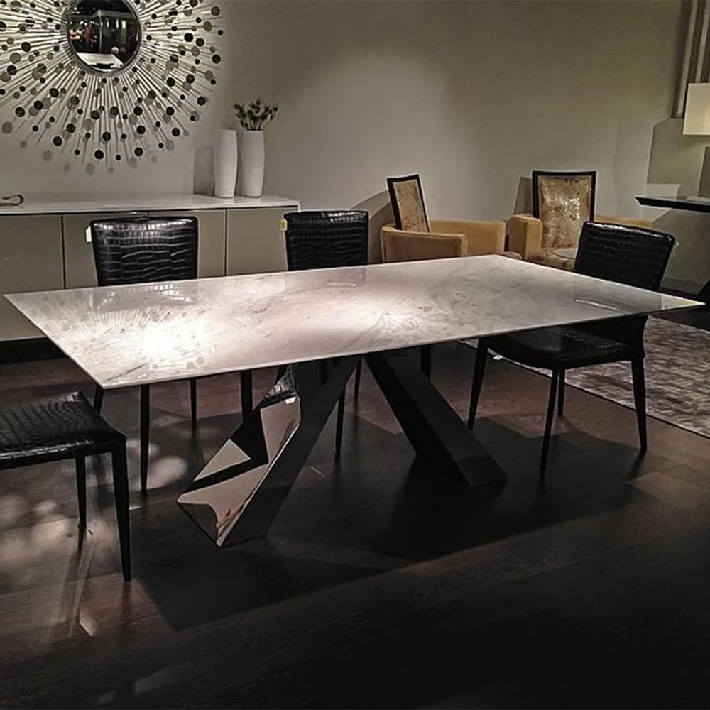 Butterfly Dining Table - Marble with Stainless Steel Pedestal Base - Variation Available