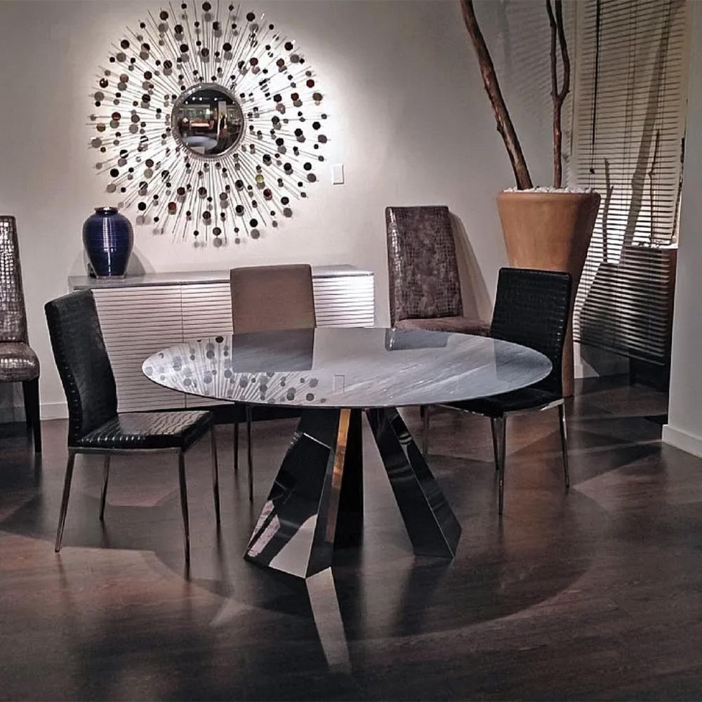 Butterfly Dining Table - Round - Marble with Stainless Steel Pedestal Base - Variation Available