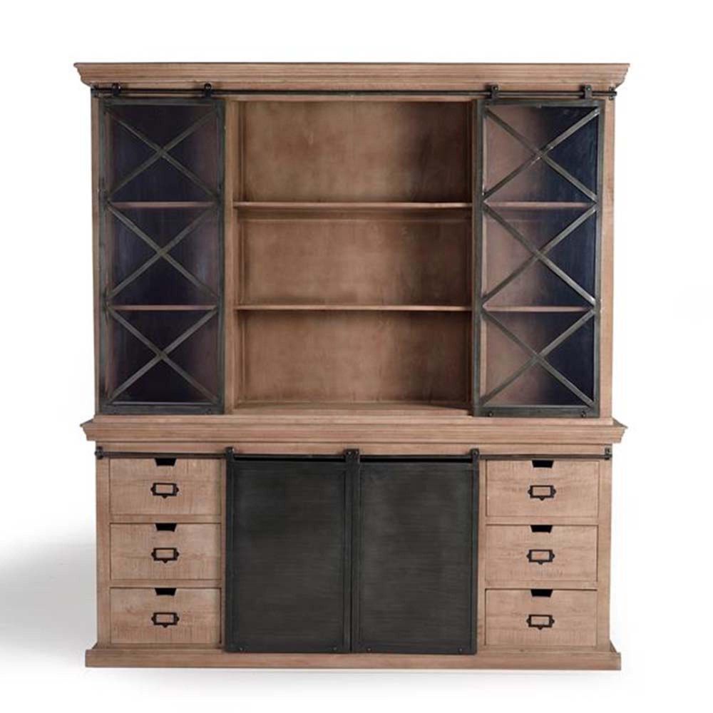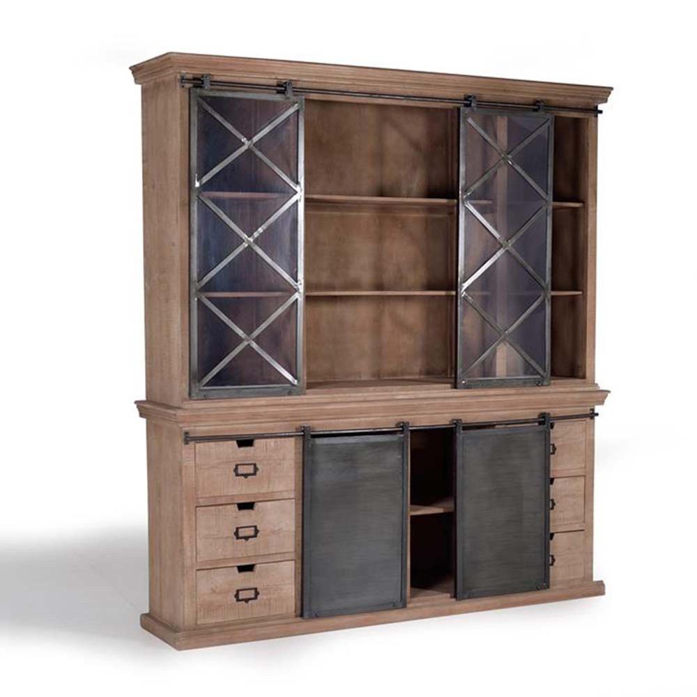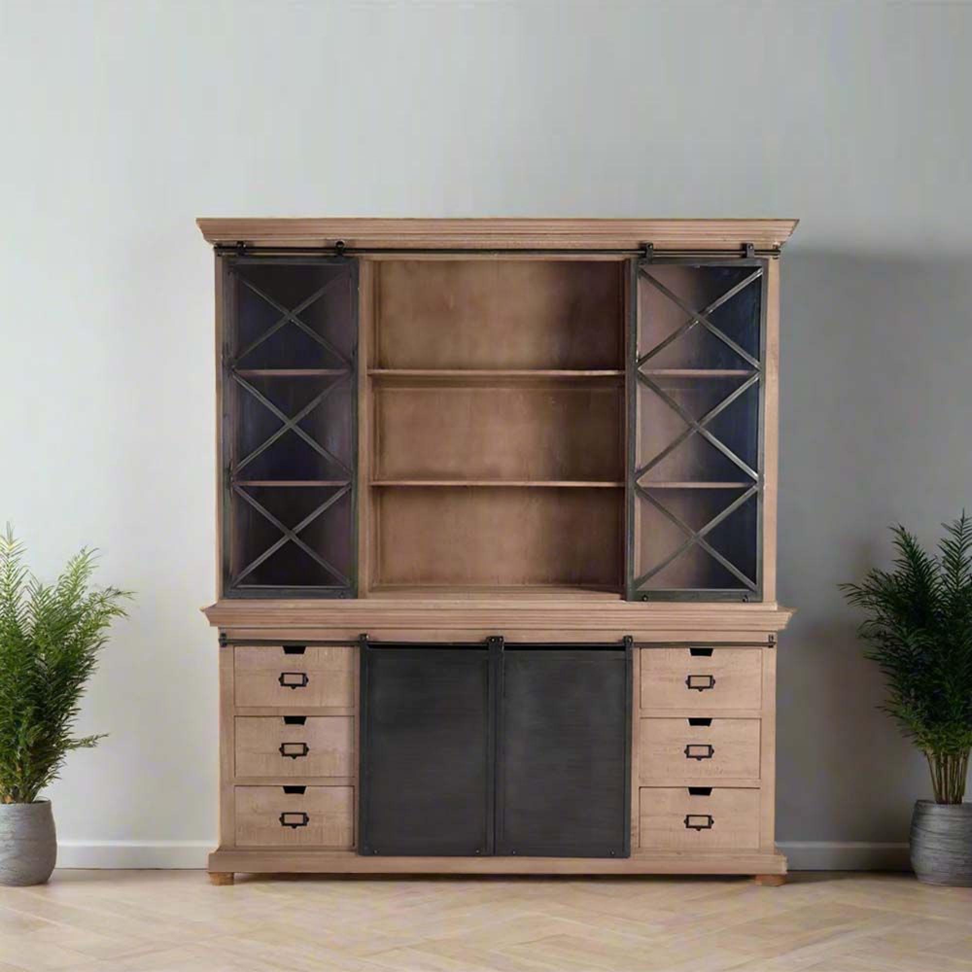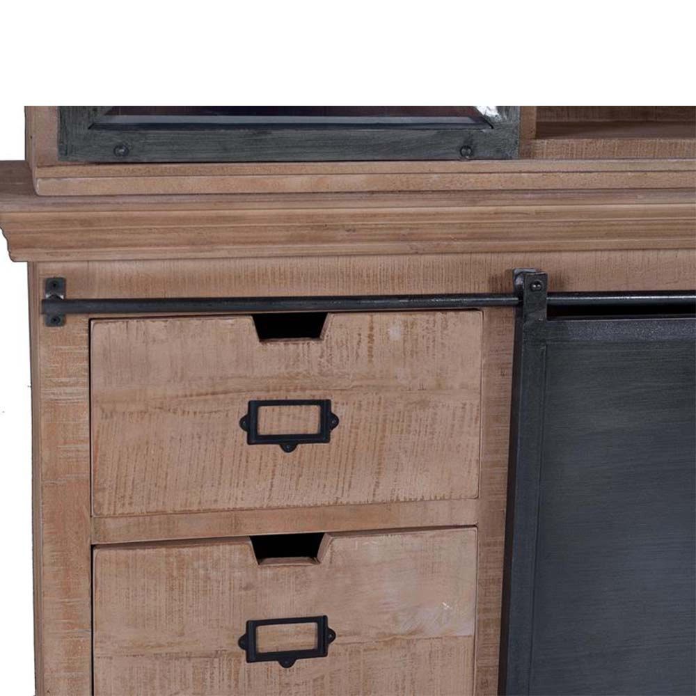 Item Code: 1284 Mango Tree Wood China Cabinet In Industrial Style With 4 Slides And 6 Draws And Metal Details