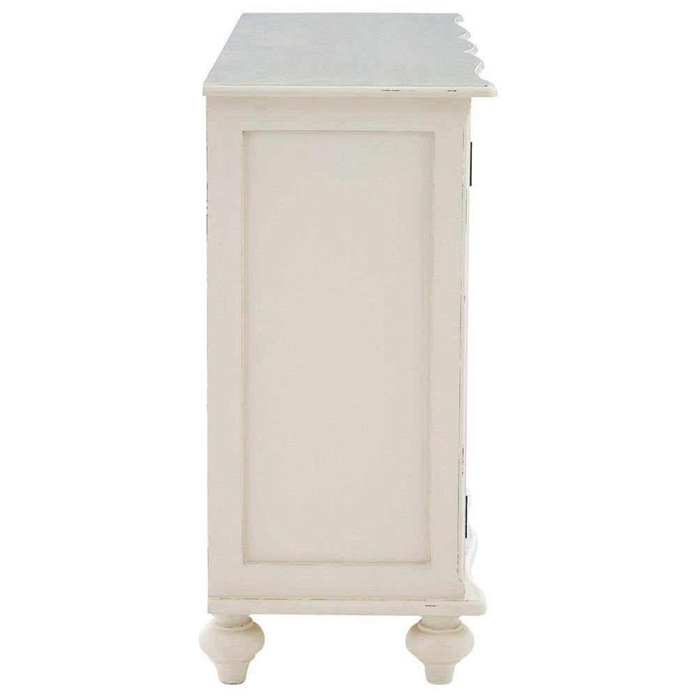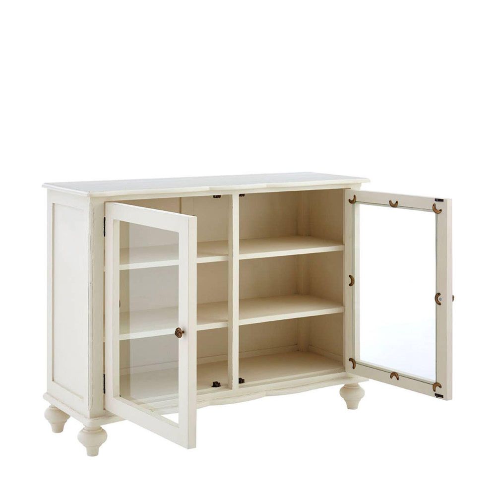 Item Code: 5502133 An aesthetically functional addition for a variety of abodes, the Loire 2 door cabinet is crafted from sustainable wood with metallic handles.Boasting a smooth white painted finish, the Loire display case is made from sustainable bayur wood. Elegant carved detailing provide a decorative touch to the top and bottom and is accentuated by subtle distressing to the paintwork.