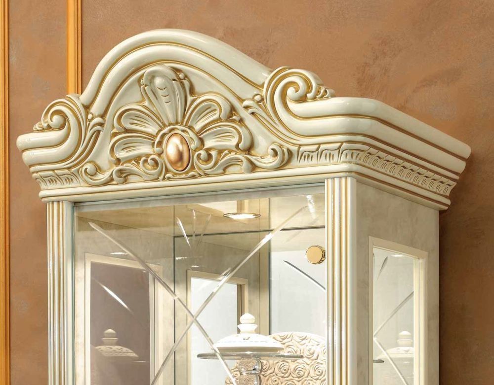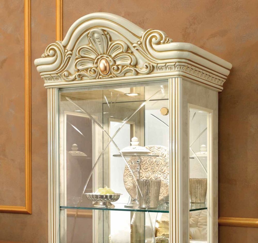 Leonardo Vitrine - 1 Door - Ivory Gloss and Gold