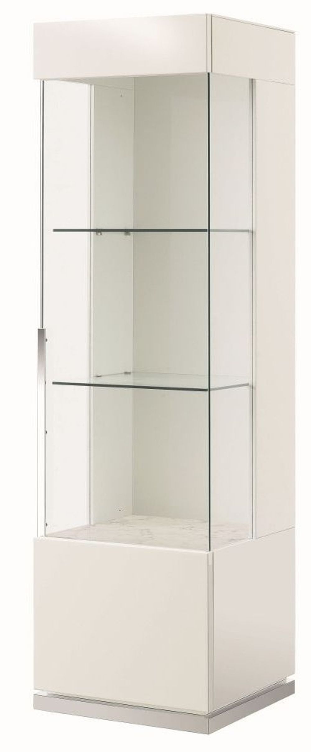 The CANOVA collection stands out for its modern, linear and bright design. The high gloss white and chrome enhance details in marble finish. CANOVA finds its ideal expression in the living room with bold, well proportioned volumes cut across by glass surfaces and shelves.
