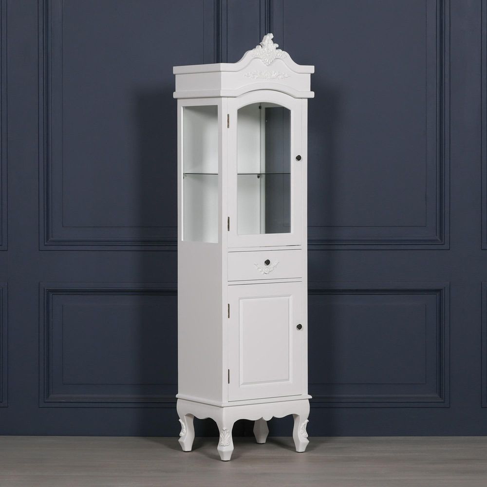 French Style Display Cabinet - White - Narrow